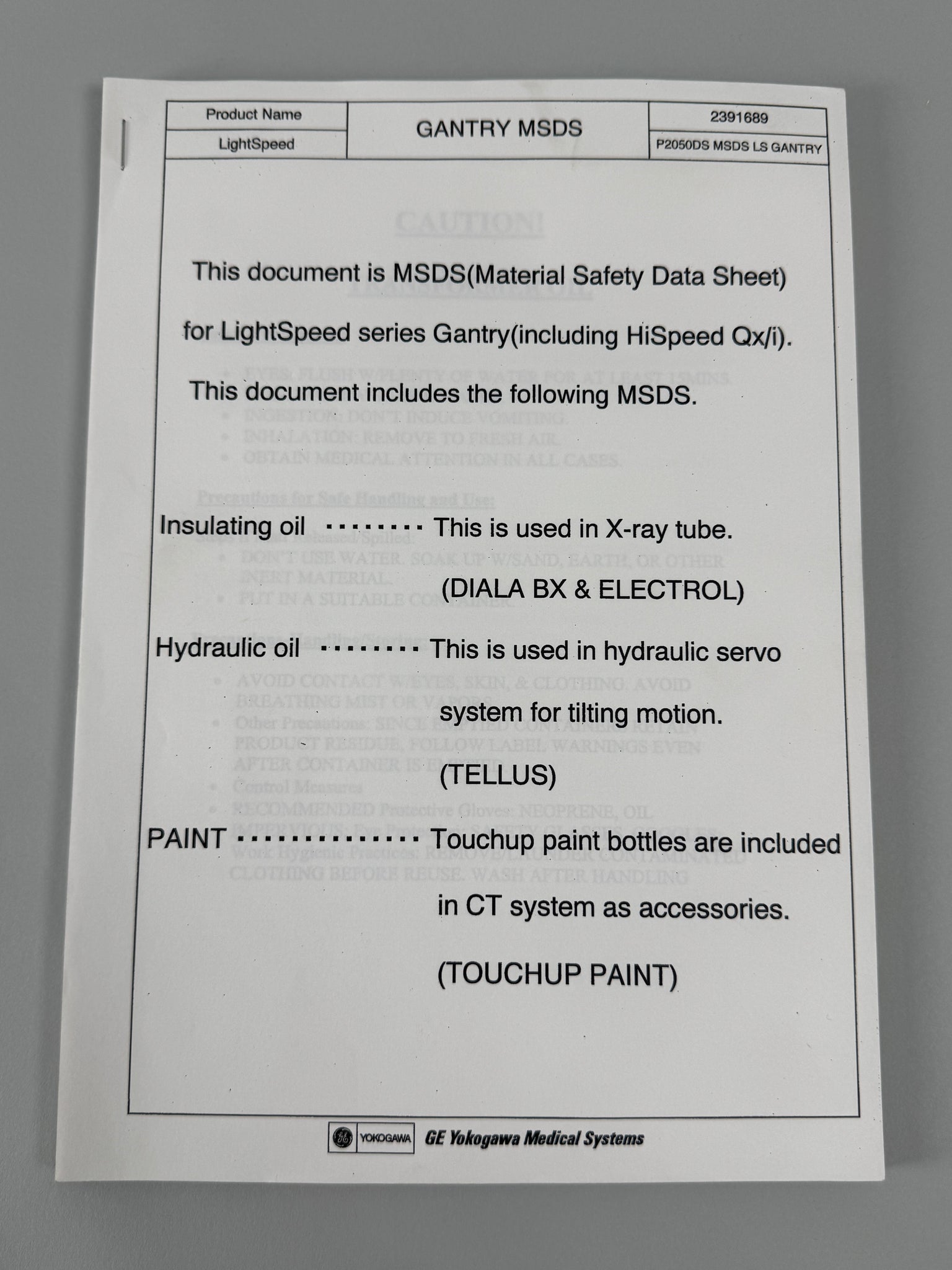 LIGHTSPEED GANTRY MSDS 2391689 P2050DS MSDS LS GANTRY. Please review all images carefully, we'll be happy to answer any questions you may have before purchasing.